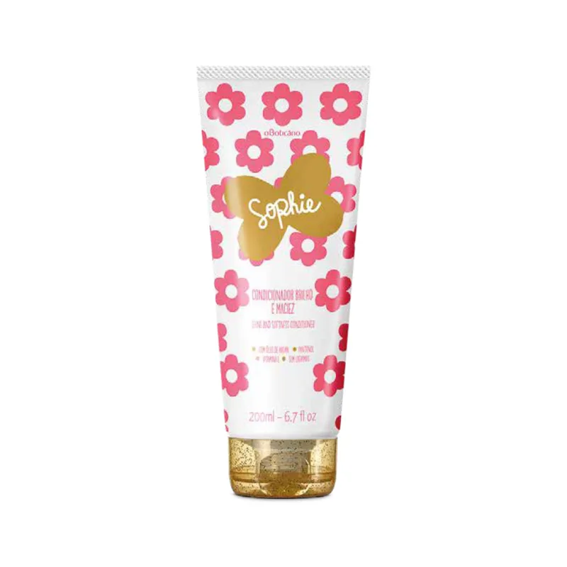 O Sophie Condicionador é perfeito para todos os tipos de cabelo, seja liso, ondulado ou crespo. Tem fórmula com ingredientes incríveis para cuidar do seu cabelo como ele merece! O condicionador é enriquecido com óleo de argan, pantenol e vitamina B5, deixando os fios super macios e tão brilhantes que você vai achar que foi feito no planeta glitter! Além disso tudo, ainda tem um cheirinho floral que permanece no cabelo por até 8 horas!