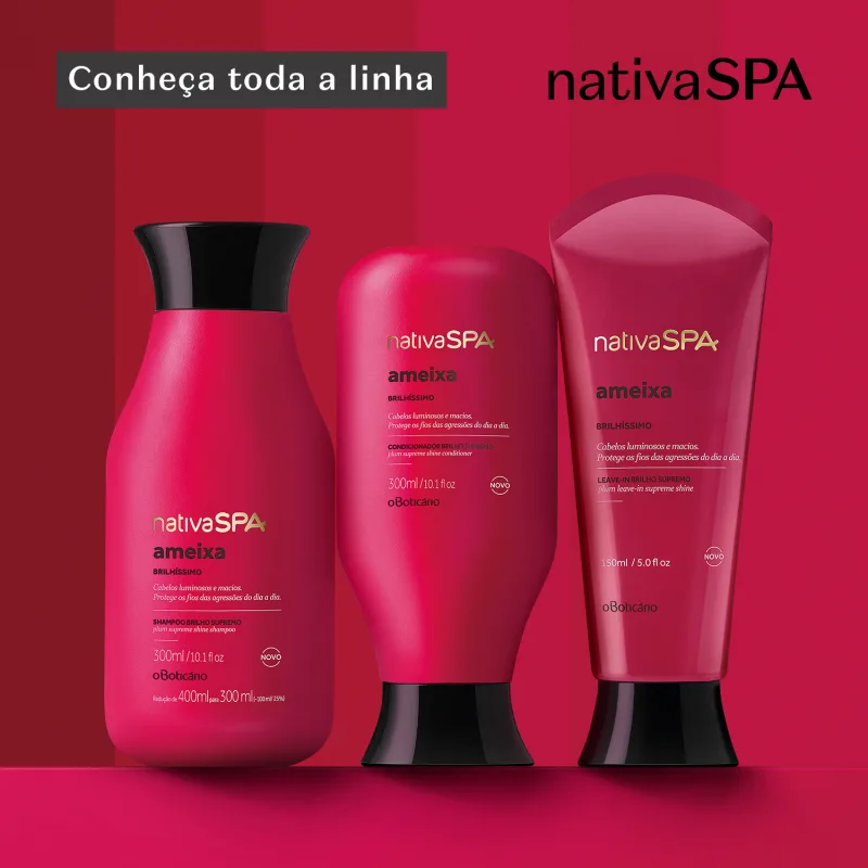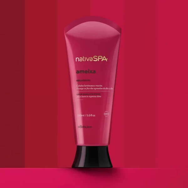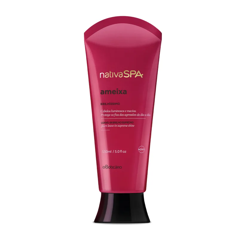 O Creme sem Enxágue para Cabelos Luminosos Nativa SPA Ameixa finaliza os fios no lugar, com brilho extremo e maciez.