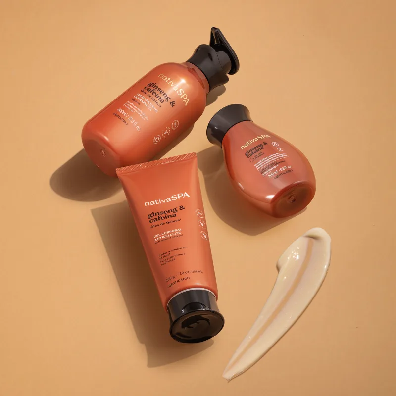 Nativa SPA te convida para sentir a vida de pele e alma! Aproveite o momento de autocuidado para massagear seu corpo com o Gel Corporal Anticelulite Nativa SPA Ginseng e Cafeína, seu uso aliado a massagem reduz visivelmente o aspecto da celulite na coxa, bumbum, abdômen e aumenta a elasticidade da pele.
