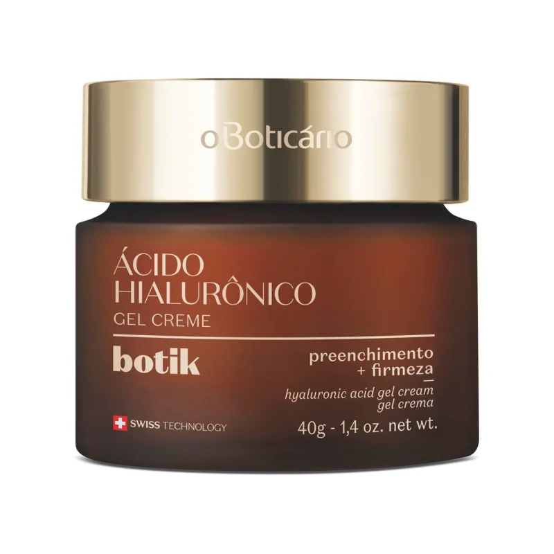 O Gel Creme Facial Firmador Ácido Hialurônico Botik possui uma fórmula com ácido hialurônico puro combinado a ativos que promovem hidratação profunda e aumentam a síntese de colágeno.