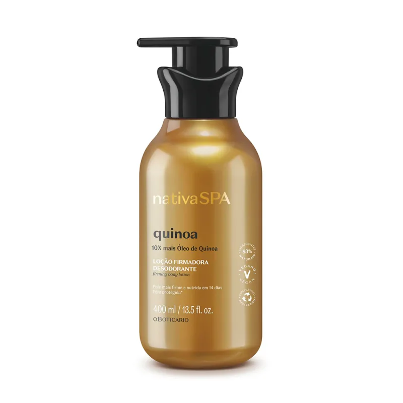 O Nativa SPA Loção Firmadora Desodorante Corporal Quinoa, 400 ml hidrata, desodoriza e nutre a pele profundamente.