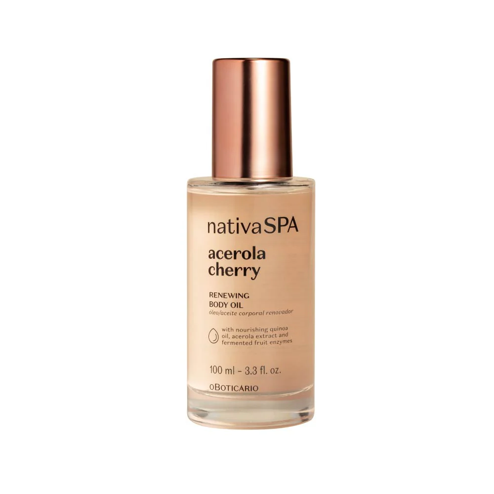 Como usar: Com a pele seca espalha o óleo pelo corpo. Aproveita para completar o teu ritual com os outros produtos da linha Nativa Spa Acerola Cherry.