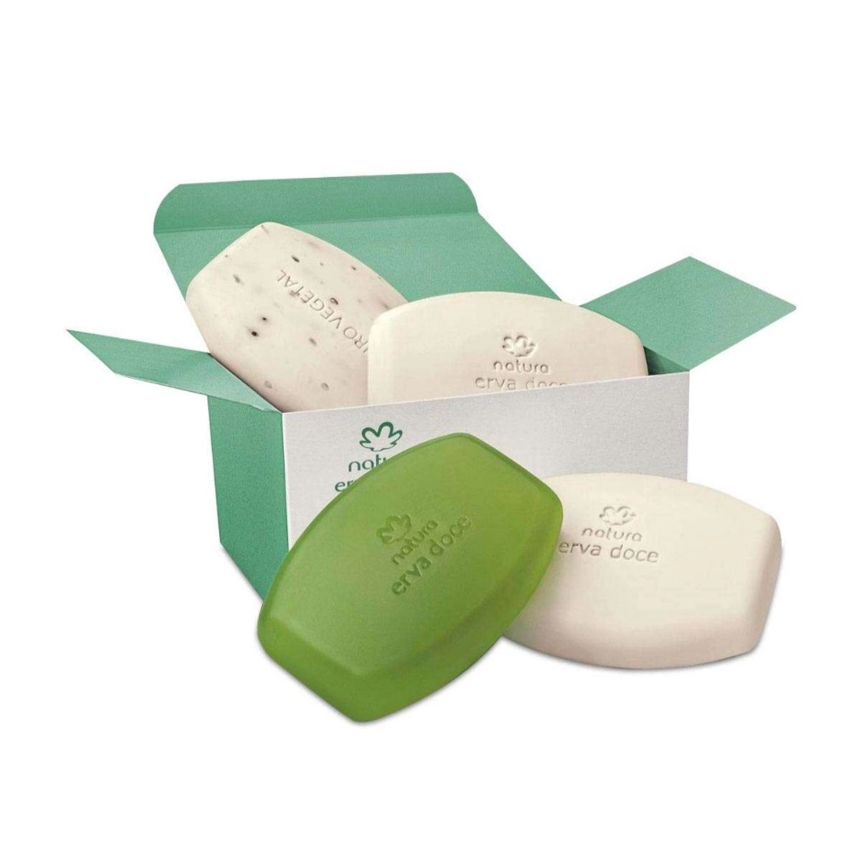 Caixa de Sabonetes em barra puro vegetal com 04 unidades sortidos sendo (2 cremosas, 1 esfoliante e 1 glicerinada) de 90 g cada. Uma fragrância aromática e leve para o dia a dia. Saboaria Natura 100% livre de gordura animal.