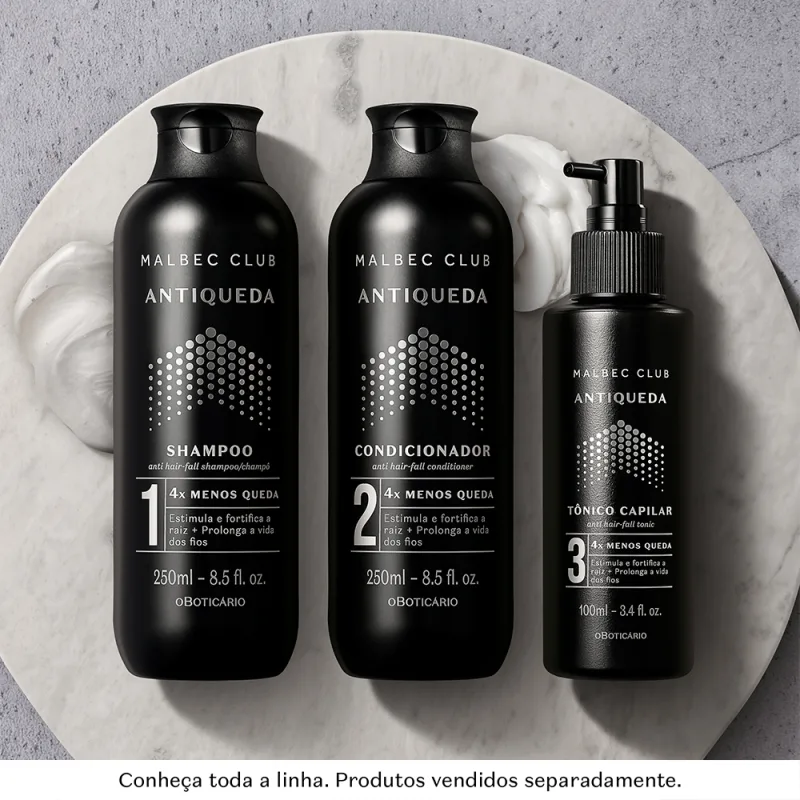 O tratamento para queda dos cabelos é ainda mais eficiente quando você aposta na linha toda para completar a sua rotina de cuidados capilares. Afinal, com a linha Malbec Club Antiqueda, em apenas 30 dias você já vê os primeiros resultados.